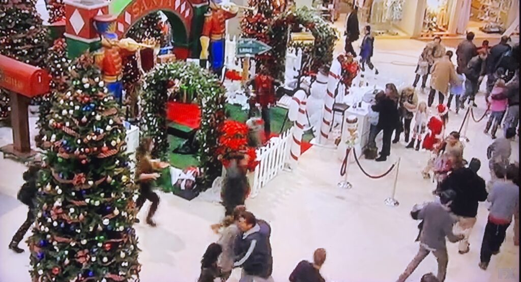 After leaving the toy store, they guys happen across a mall Santa. Unfortunately for Santa, Charlie has recently discovered things about his mom and men dressed like Santa Claus that cause him to be very bitter towards the jolly old elf. Below you can see Mac and Charlie approaching Santa compared with today’s mall background.