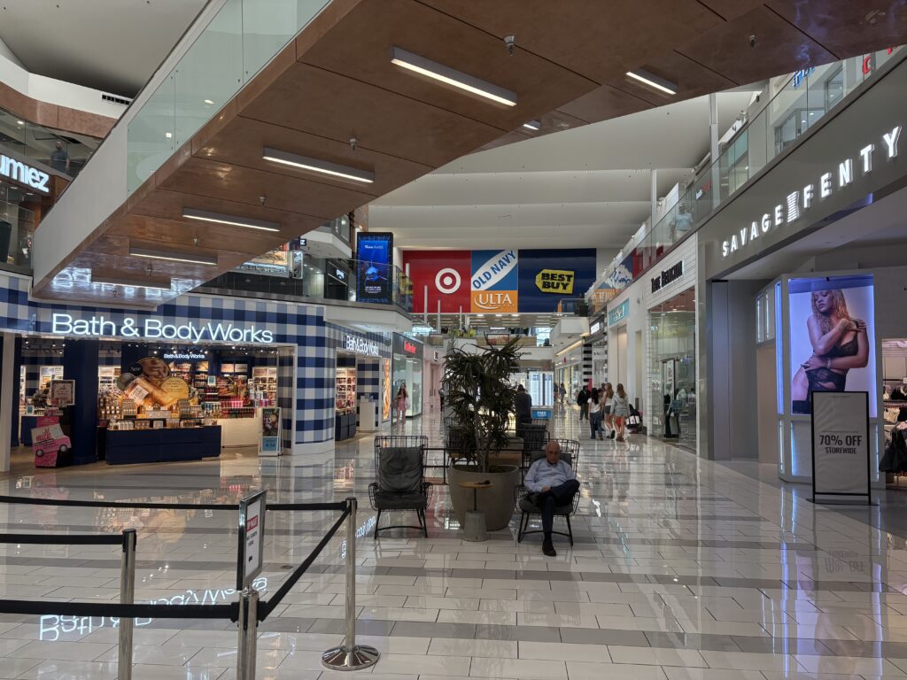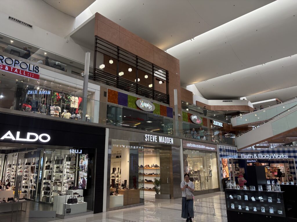 Below are some screenshots from the show compared to the mall today.